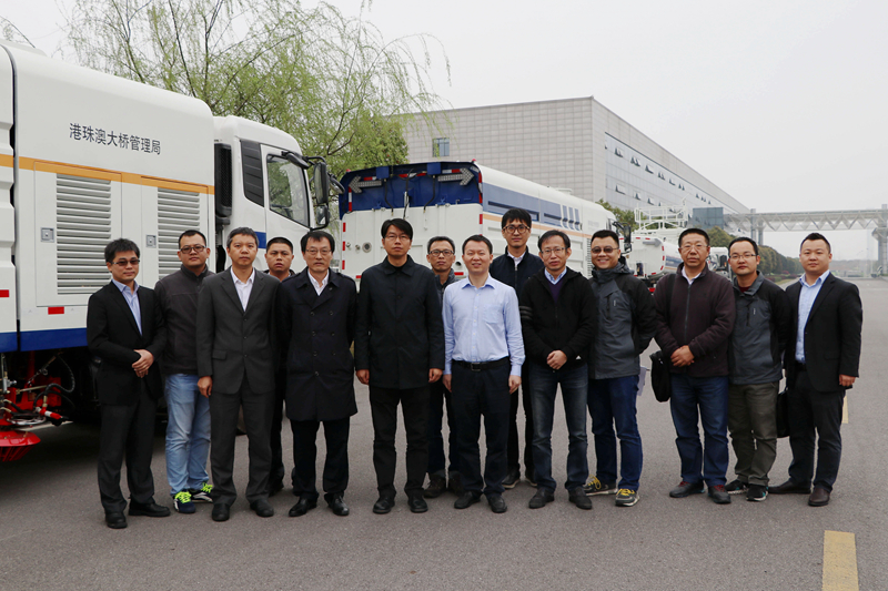 3月16日,港珠澳大桥管理局工程总监张劲文等一行领导莅临中联重科麓谷第二工业园,对即将服役于港珠澳大桥的中联环境道路保洁和市政养护装备进行现场验收。