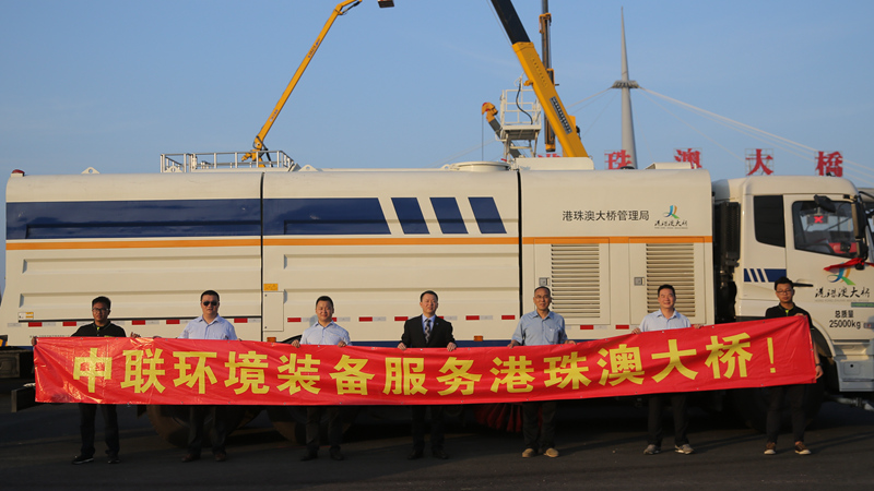 将服务于港珠澳大桥的中联环境装备有大型污水循环洗扫车、多功能高压清洗车、市政管养吸污车。其中污水循环洗扫车首创了水再生利用系统,该系统过滤精度高、流量大,经回收过滤的水色度接近于纯水,可以重复用于清洁路面。与不具备污水处理能力的同吨位洗扫车相比,其作业时间长2至3倍。对于东接香港特别行政区,西接珠海市和澳门特别行政区,全长55公里的世界第一桥——港珠澳大桥来说,它无需补给清水,能够一次性完成大桥的单程清扫作业,大幅度提高了保洁效率。